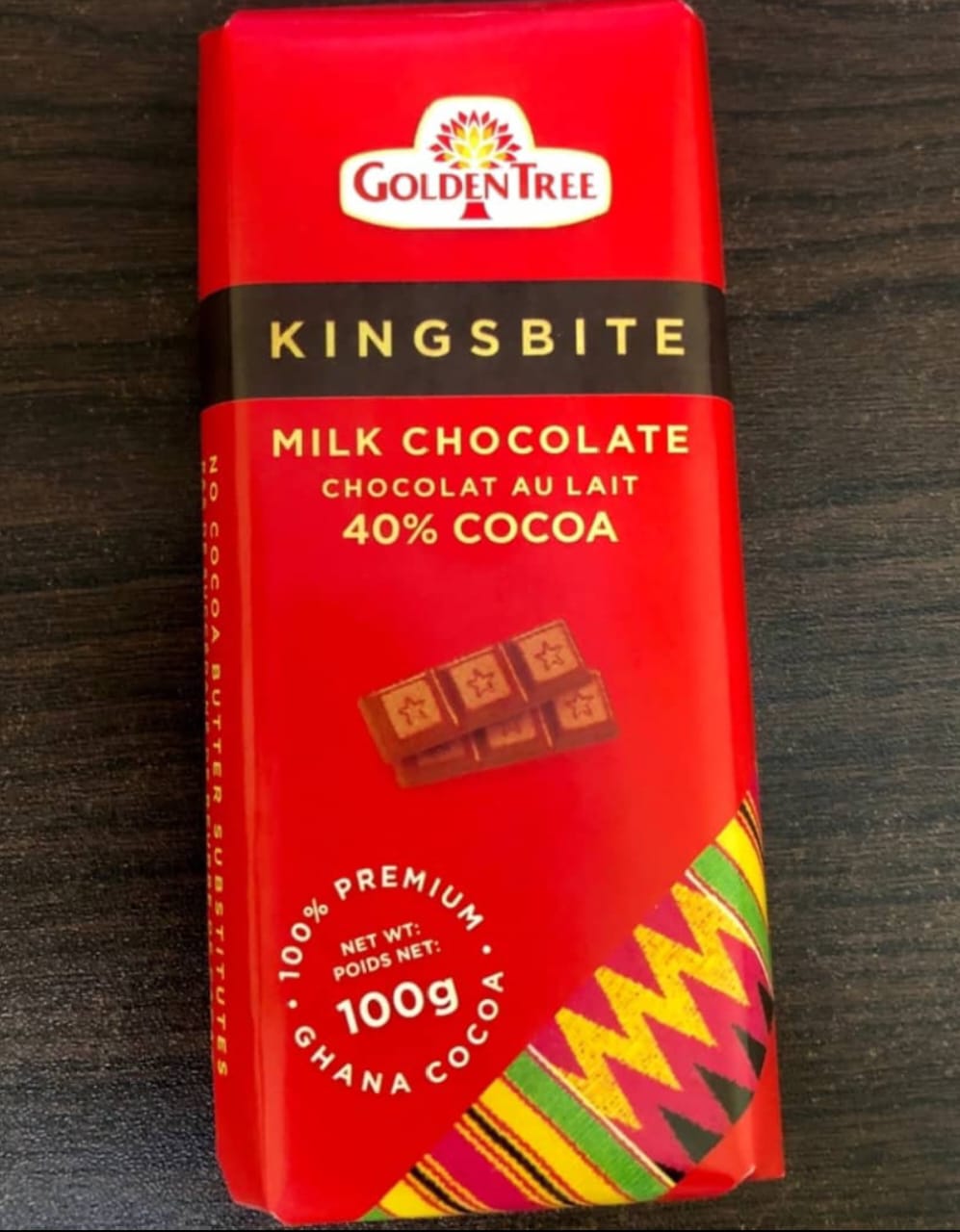 Ghana Kingsbite is a milk chocolate designed to melt in the mouth with a smooth release of all the rich goodness of cocoa and milk.